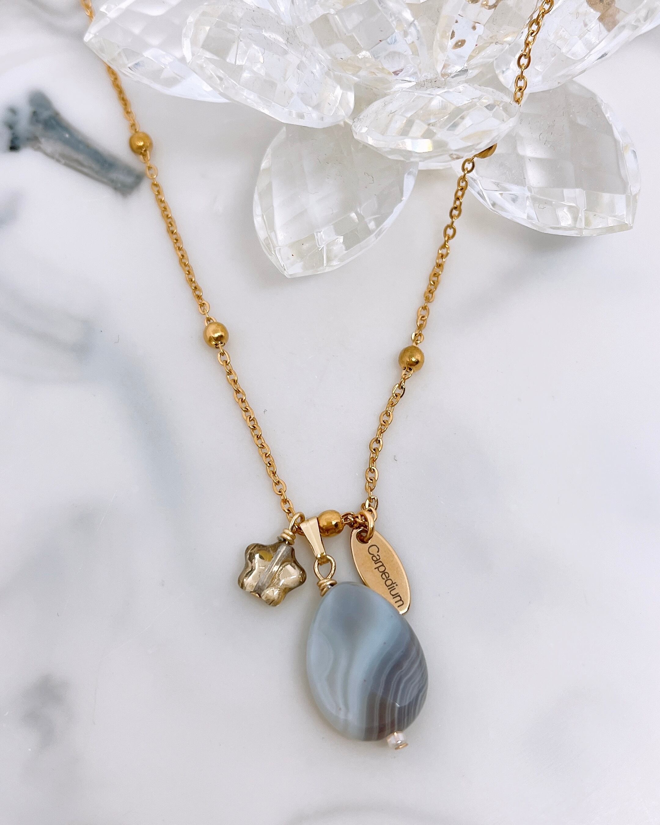 マグネットの留め具で付けやすい♫ボツワナアゲート&スタートップネックレス⭐️