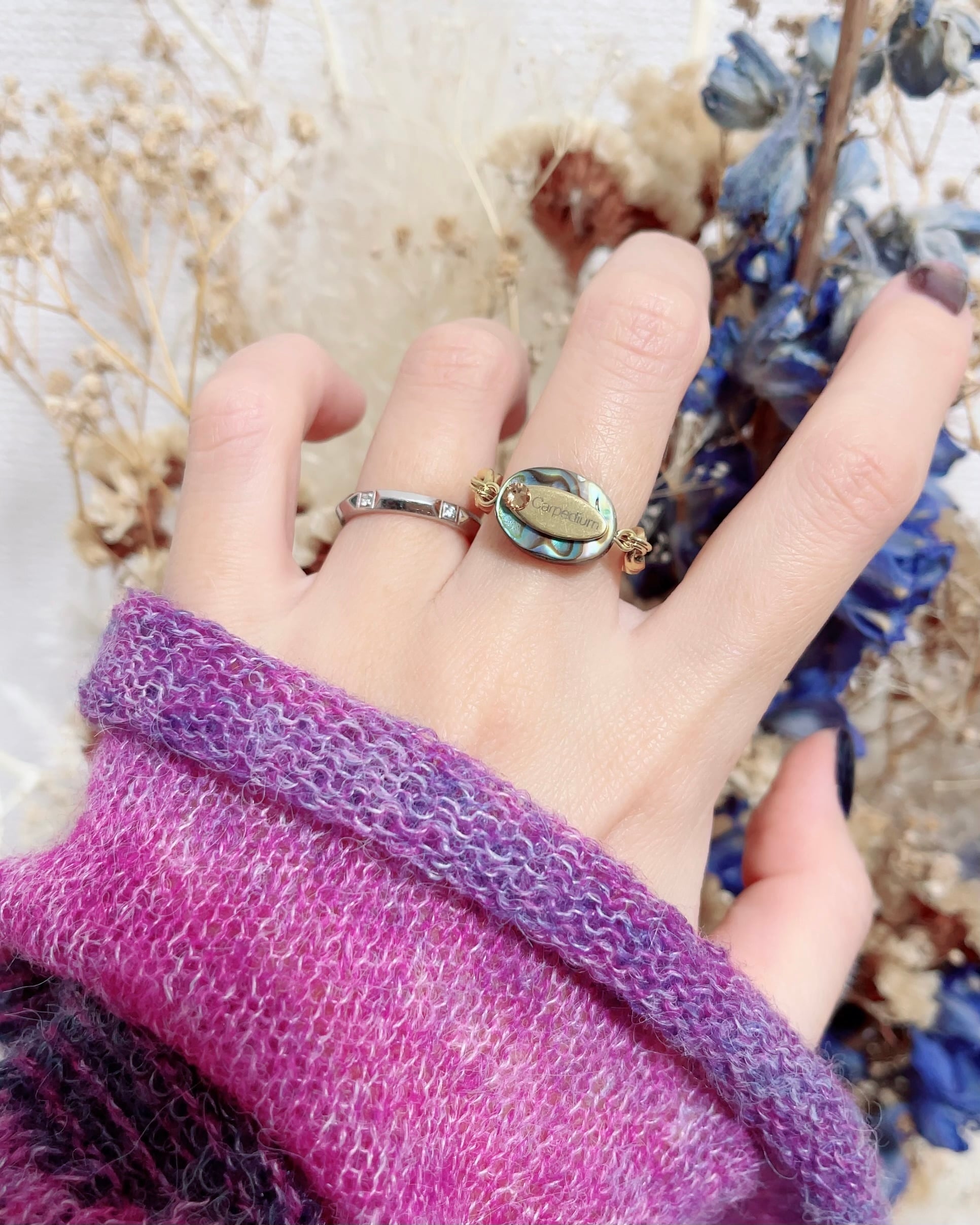 アバロンシェルのステンレスチェーンリング