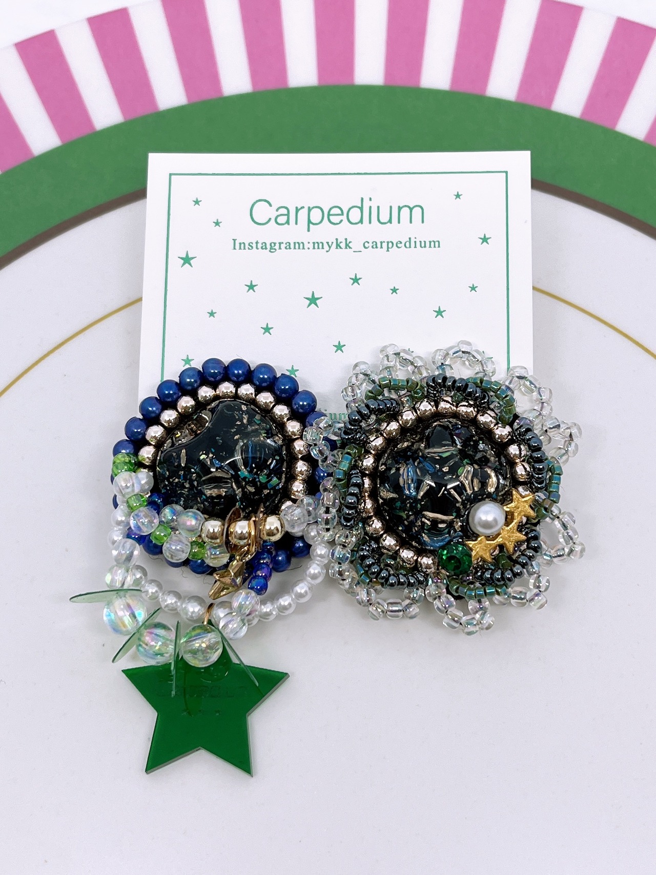 ★期間限定SpecialSale★⑨刺繍たっぷりアシンメトリーイヤリングGRN