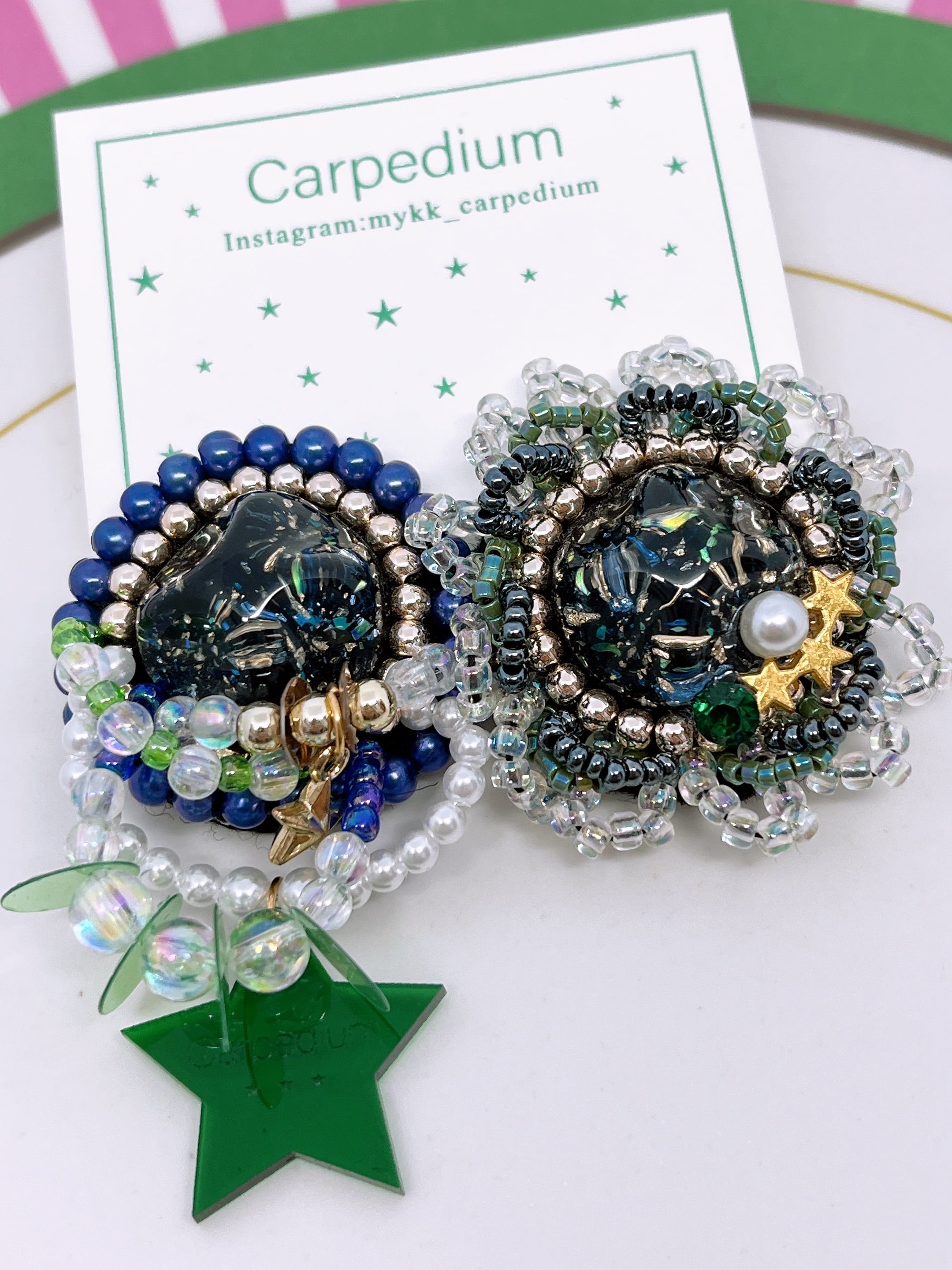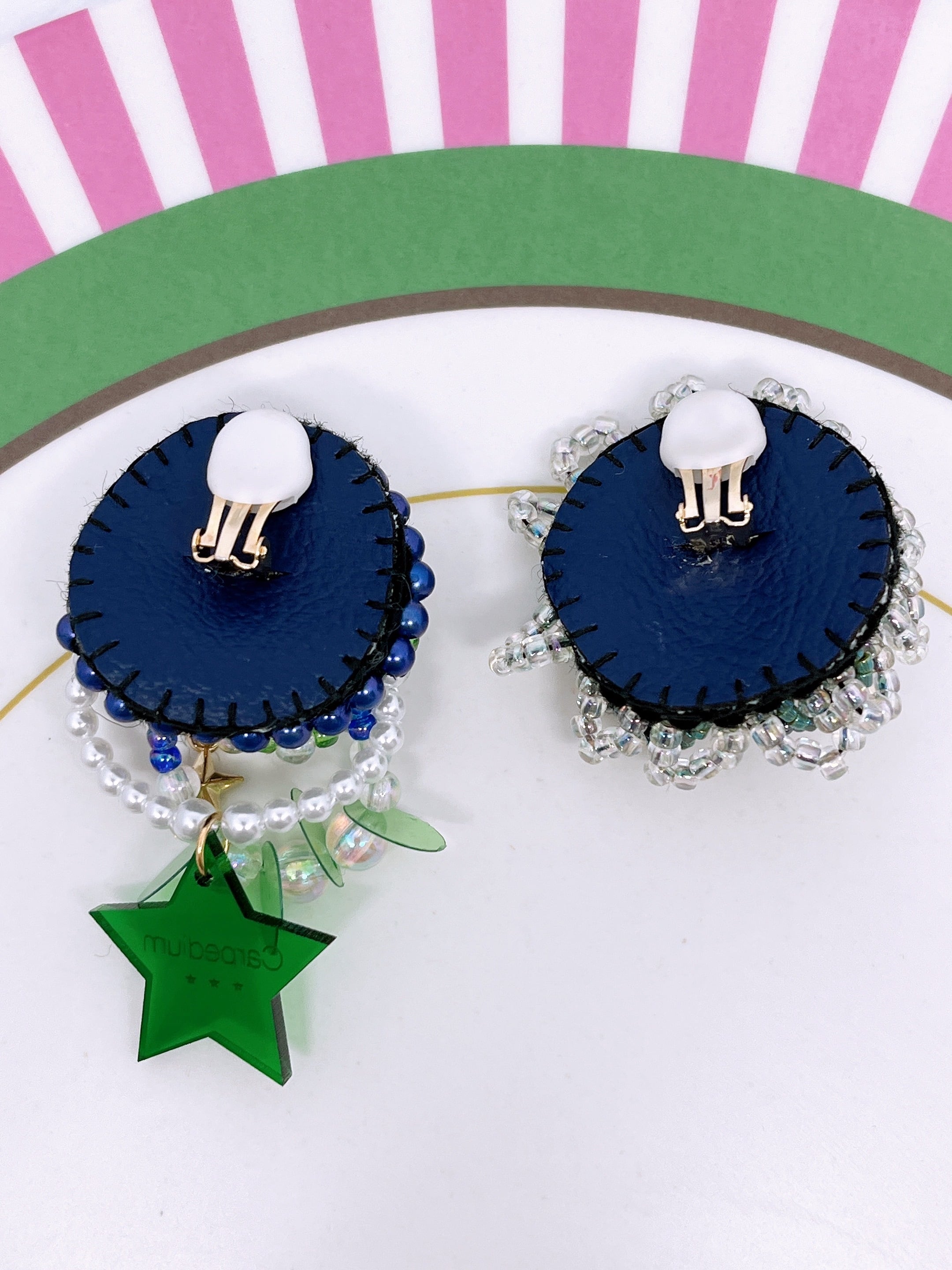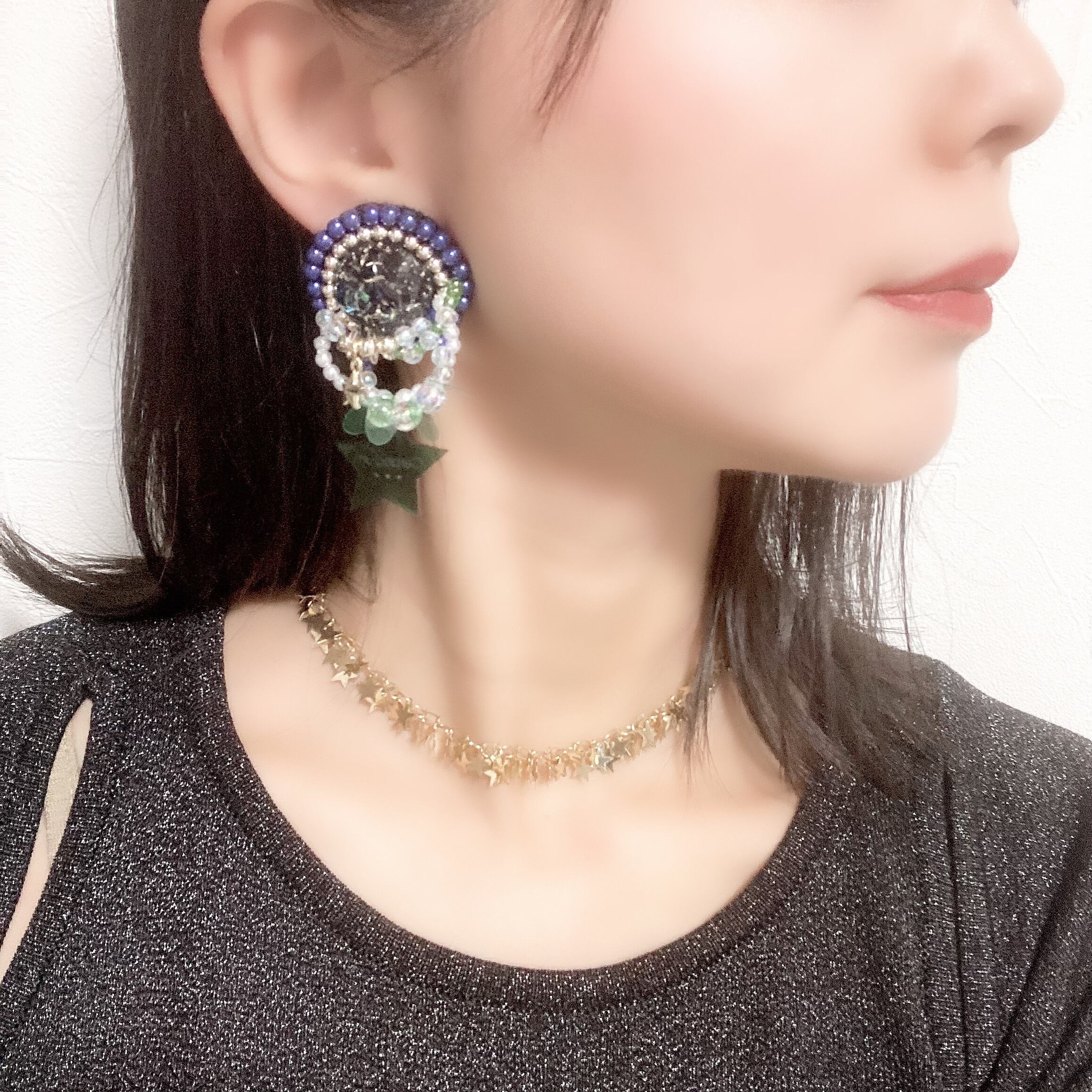 ビーズ刺繍たっぷりのアシンメトリーイヤリングです♬