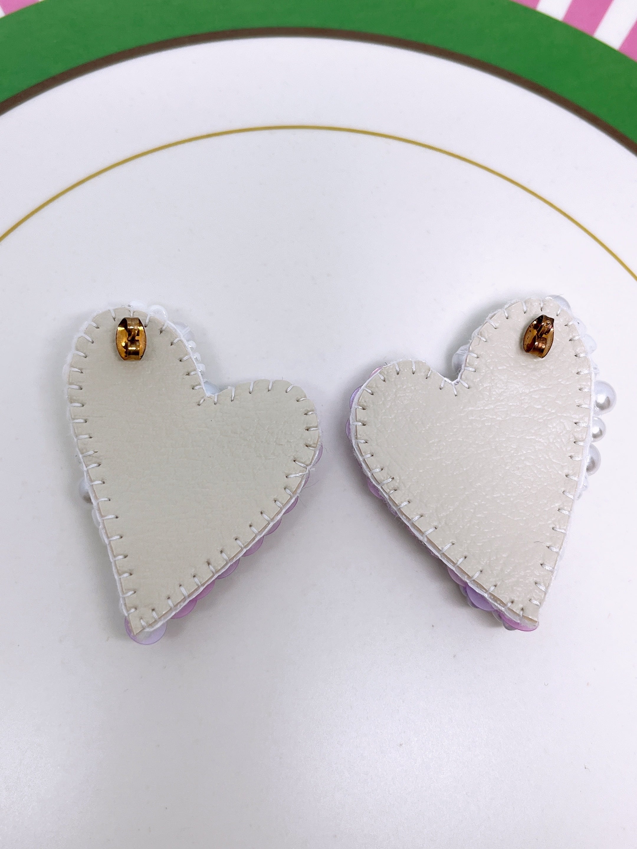 たっぷりビーズ刺繍をした大きなハートのピアス♡