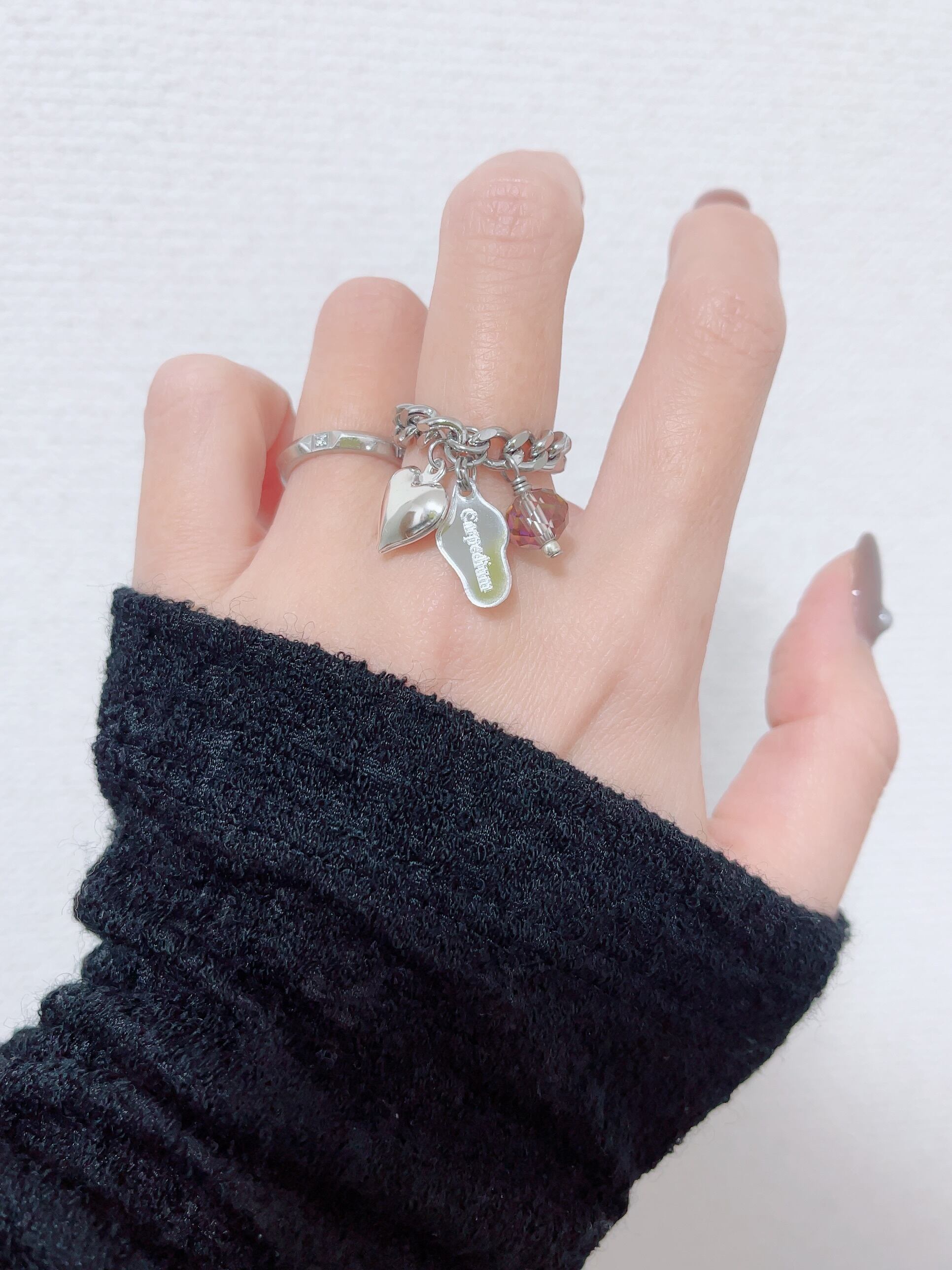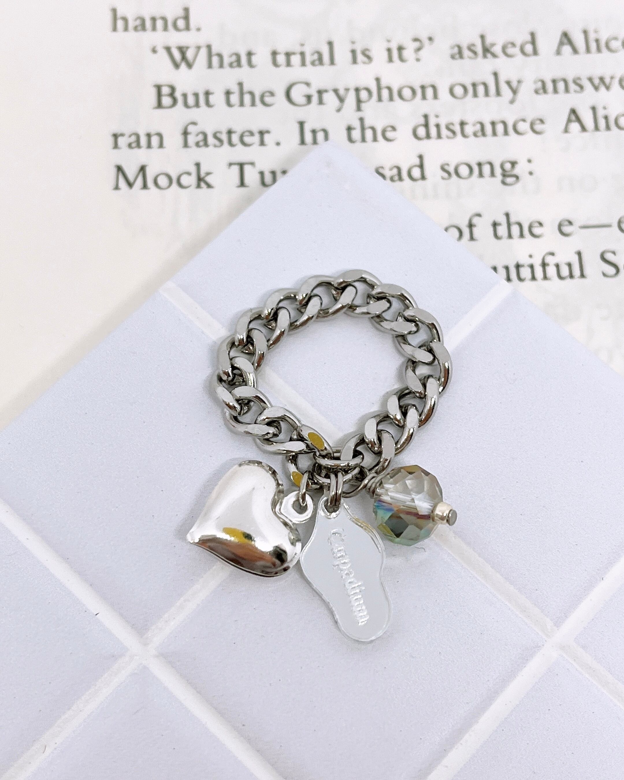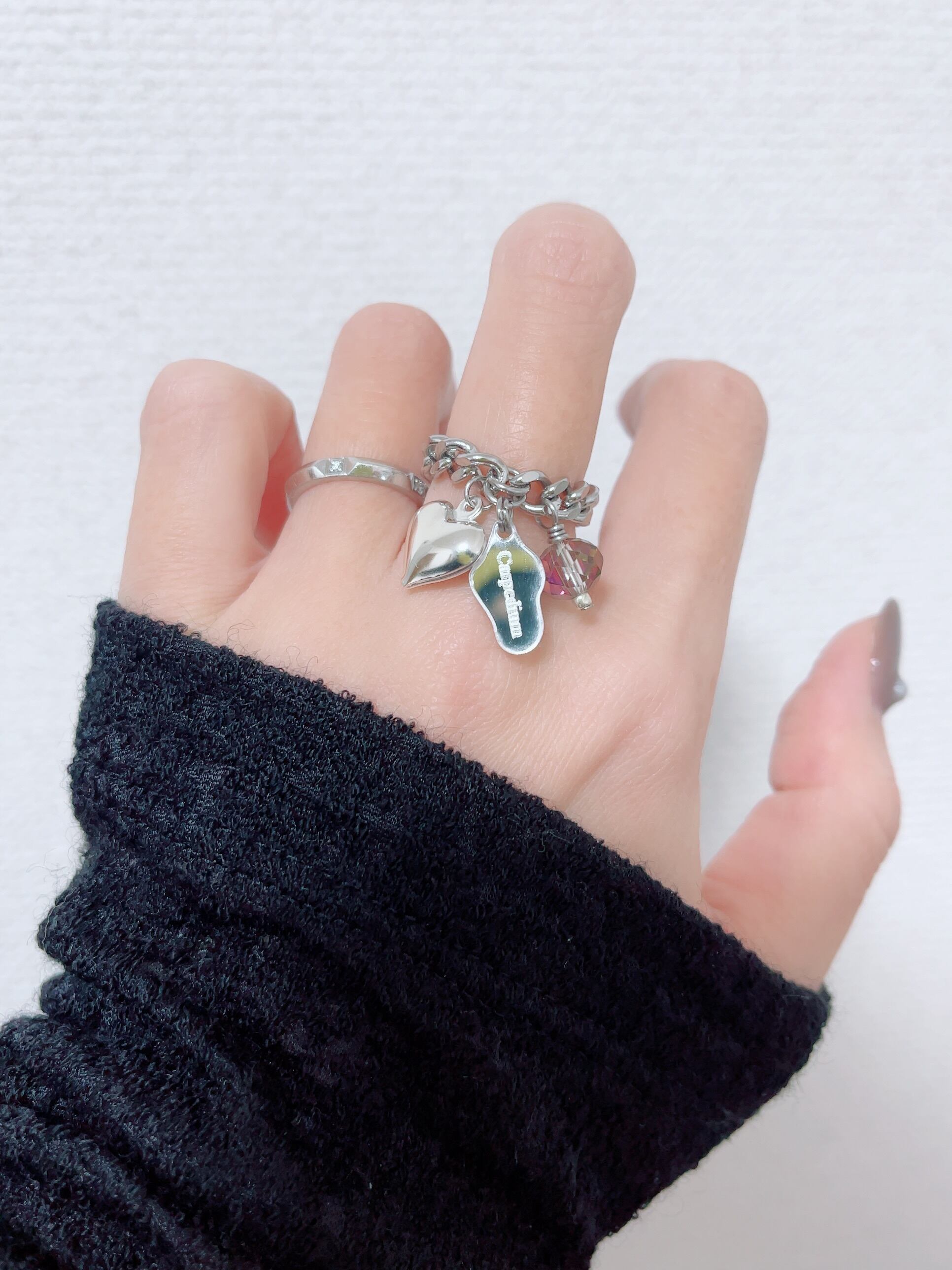 ハートチャーム付ステンレスチェーンリング