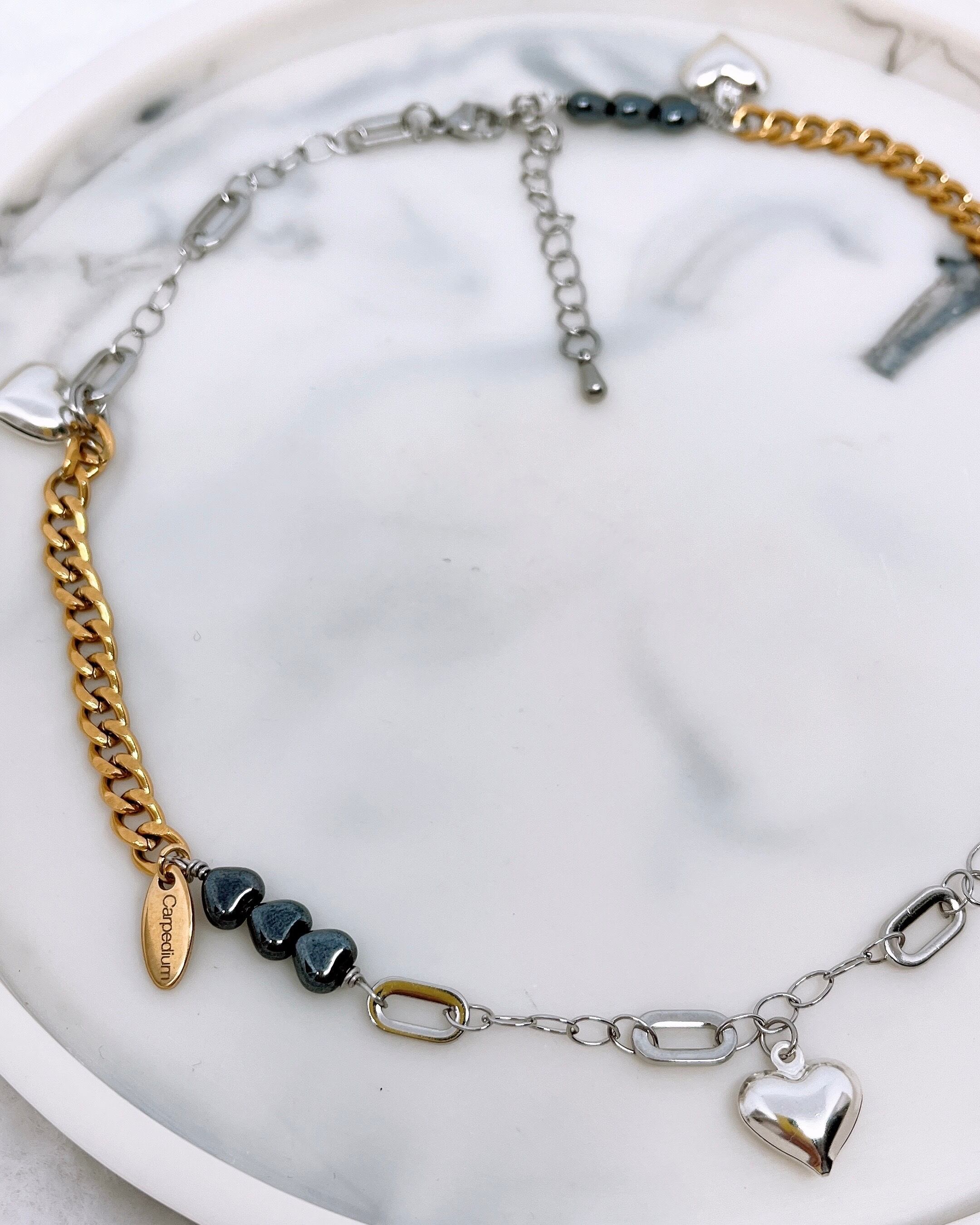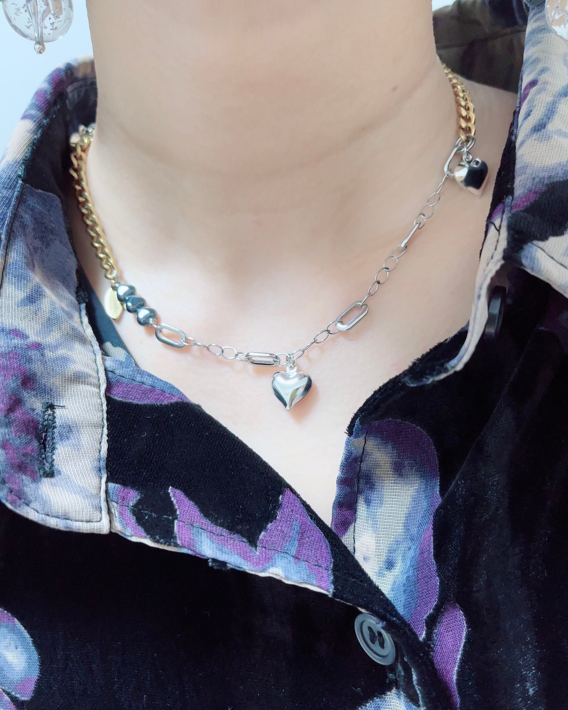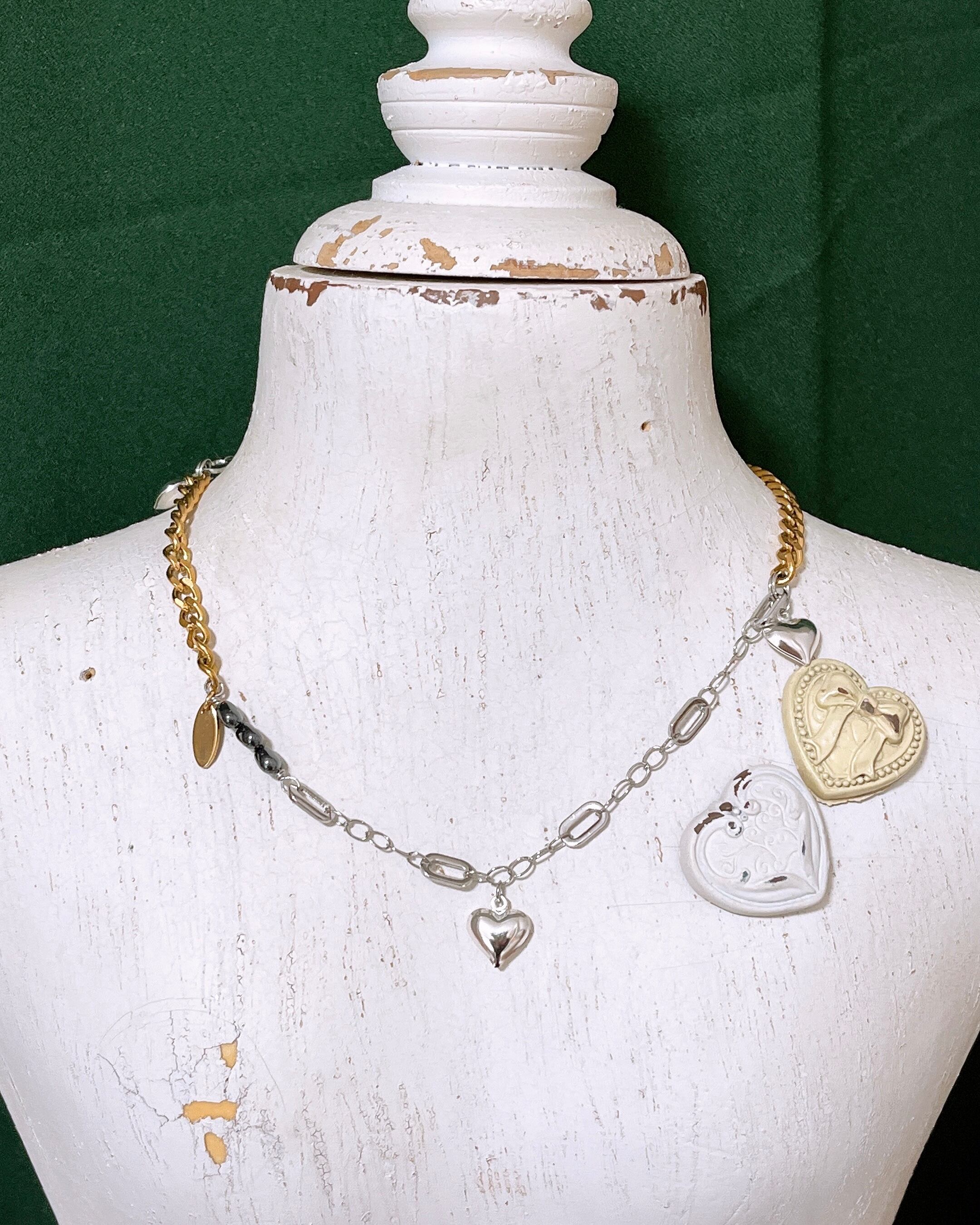 ハートチャーム付SIV×GLDチェーンネックレス