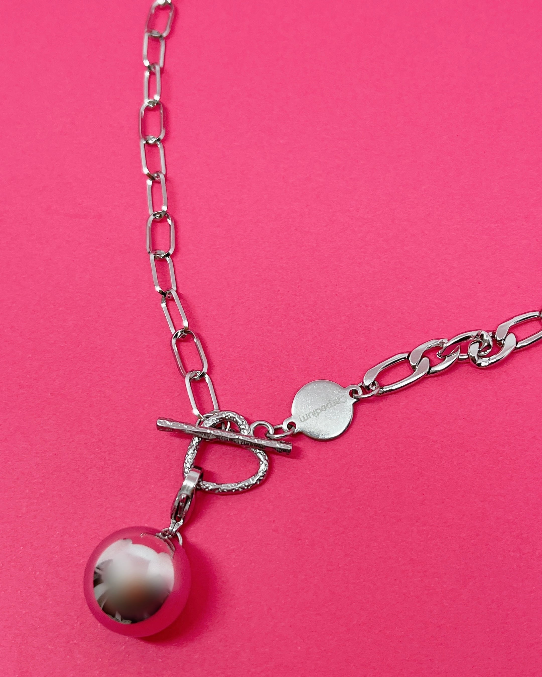 フィガロチェーン、ボールチャーム、ブランドロゴコネクター素材:ステンレス