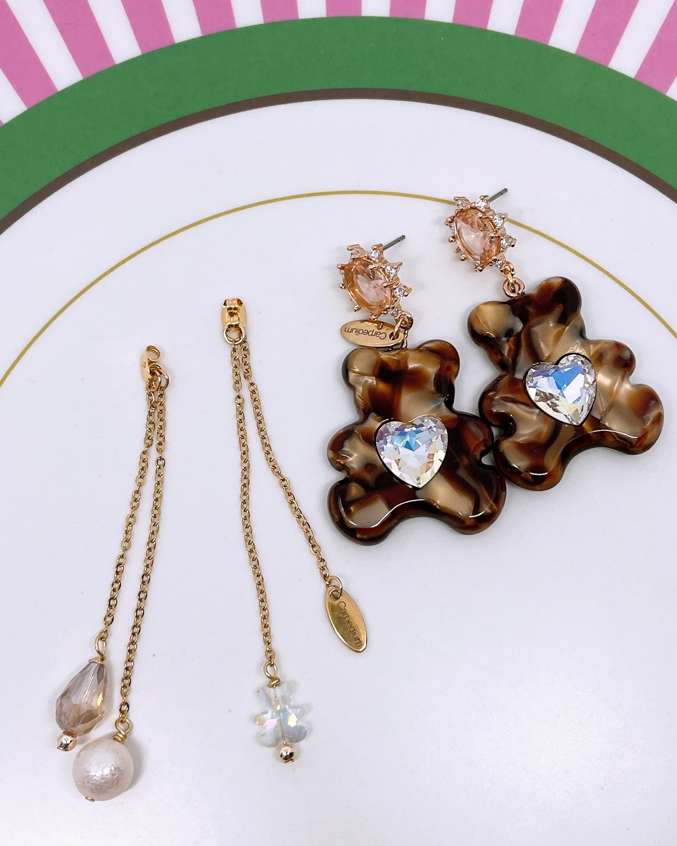キャッチ部分にチャームが付いてる、2wayタイプのピアスです