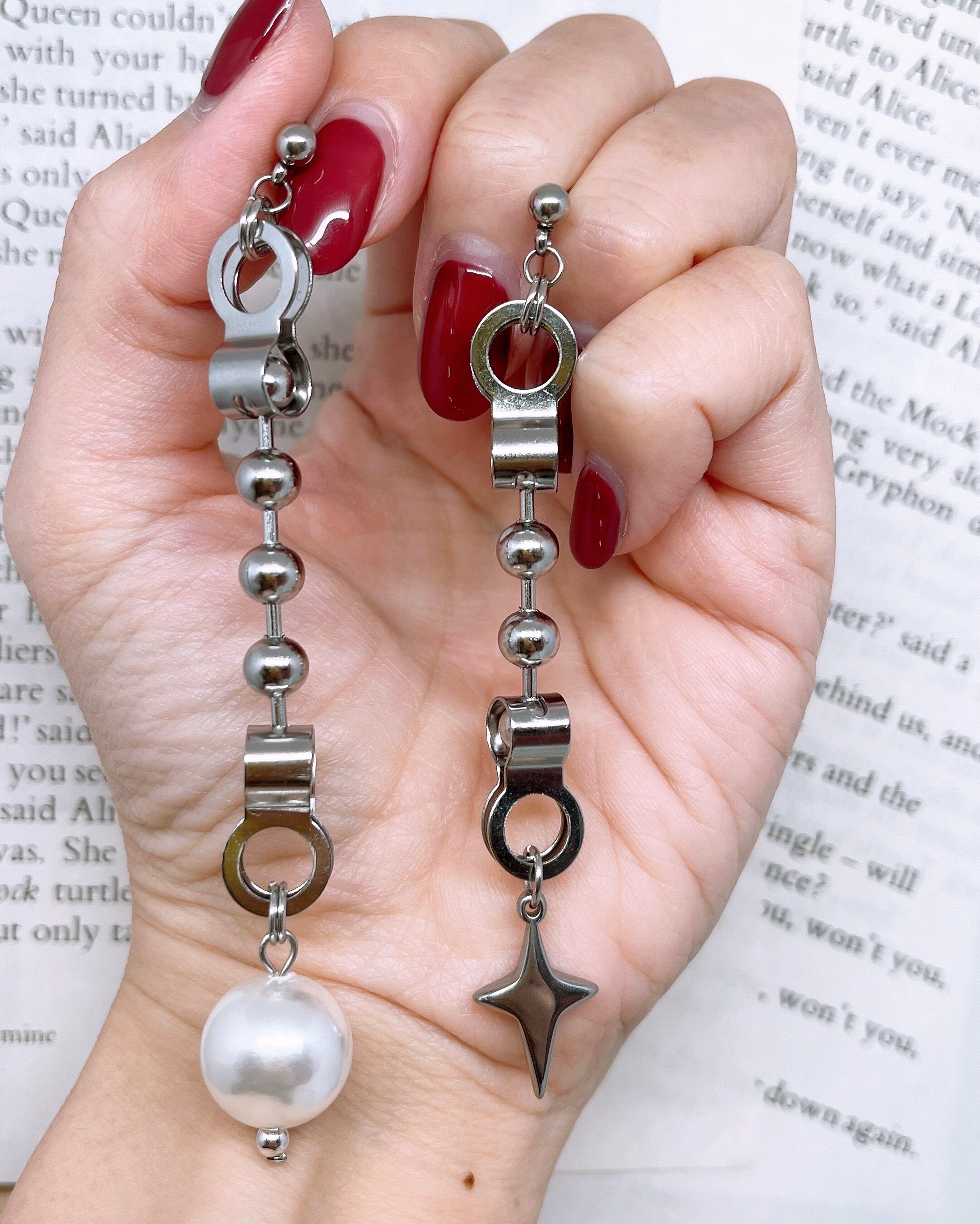 ボールチェーンとチャームの組み合わせがシンプルなのに印象的なピアスです✴︎