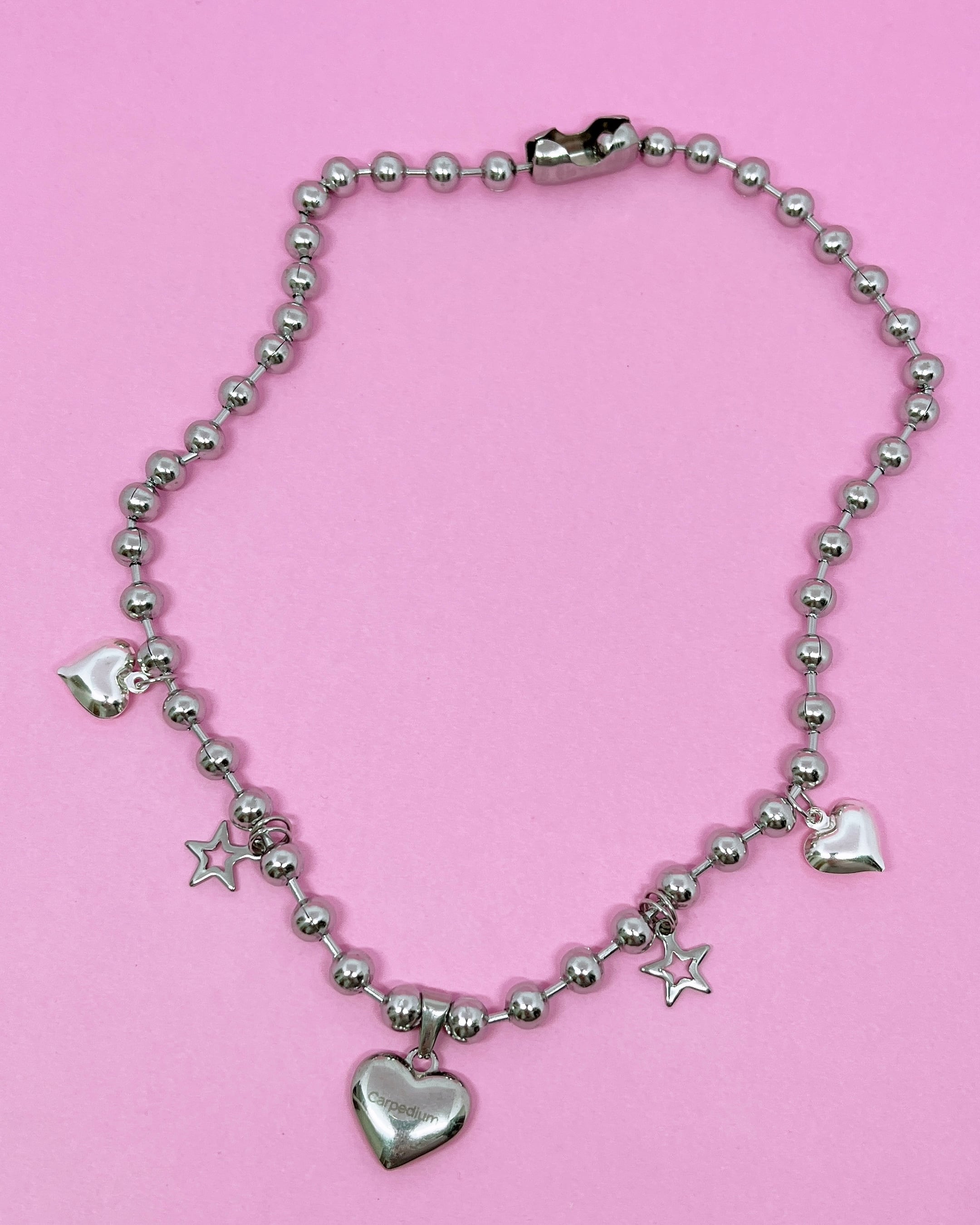 ハートと星を散りばめた、遊び心のあるネックレス⛓️