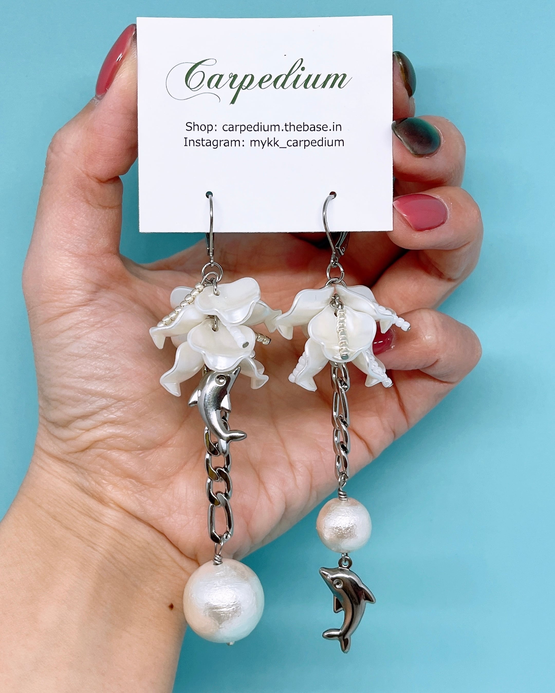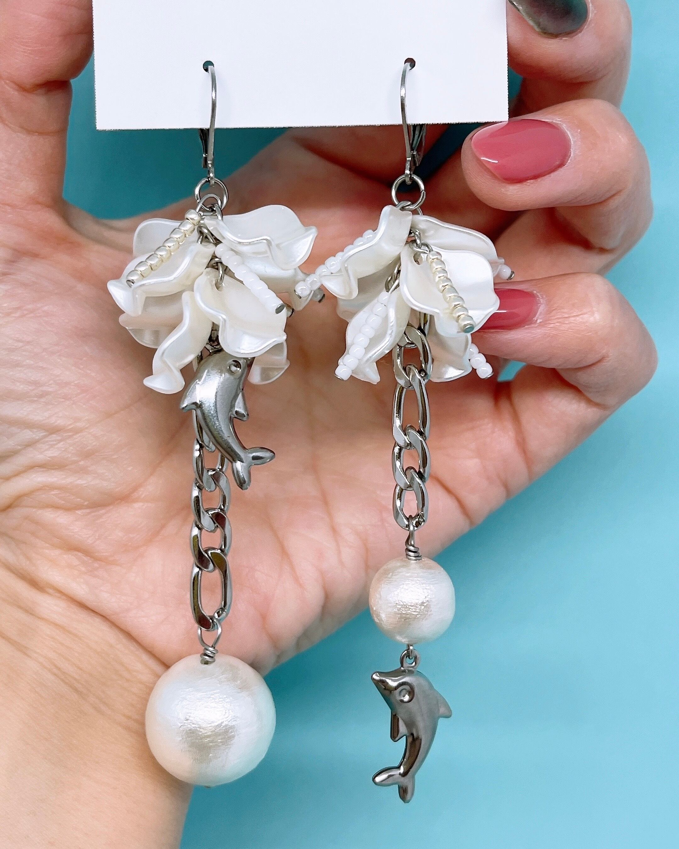 イルカ&パールアシンメトリーピアス