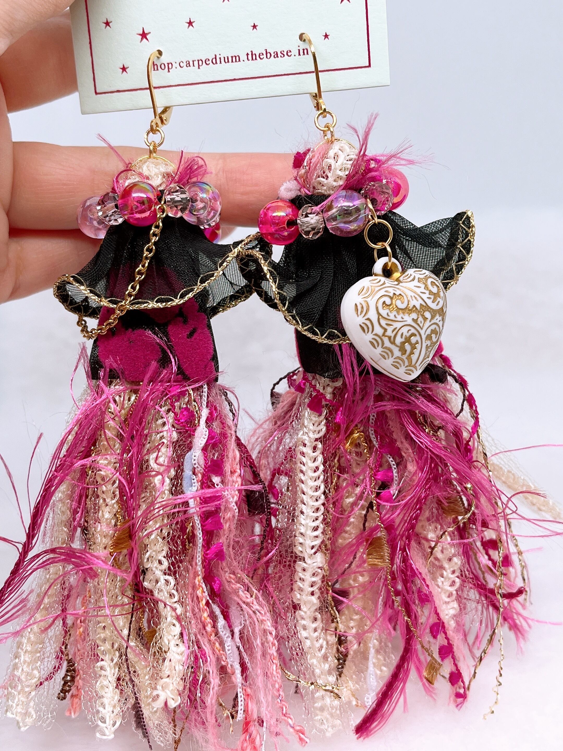 ボリュームタッセルピアスPNK